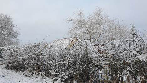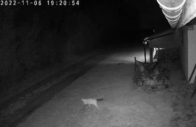 und Nachbarkater musste ich schnell eine Futterhütte bauen – links das dunkle