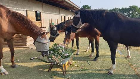 das Stroh und Heu liegt. Achtung mit den Gabeln… Irgendwie sind sie überall,