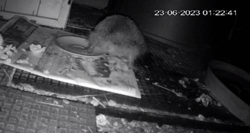 ich die Futterstation wieder aufstellen. 2 kleine Igel sah ich in der